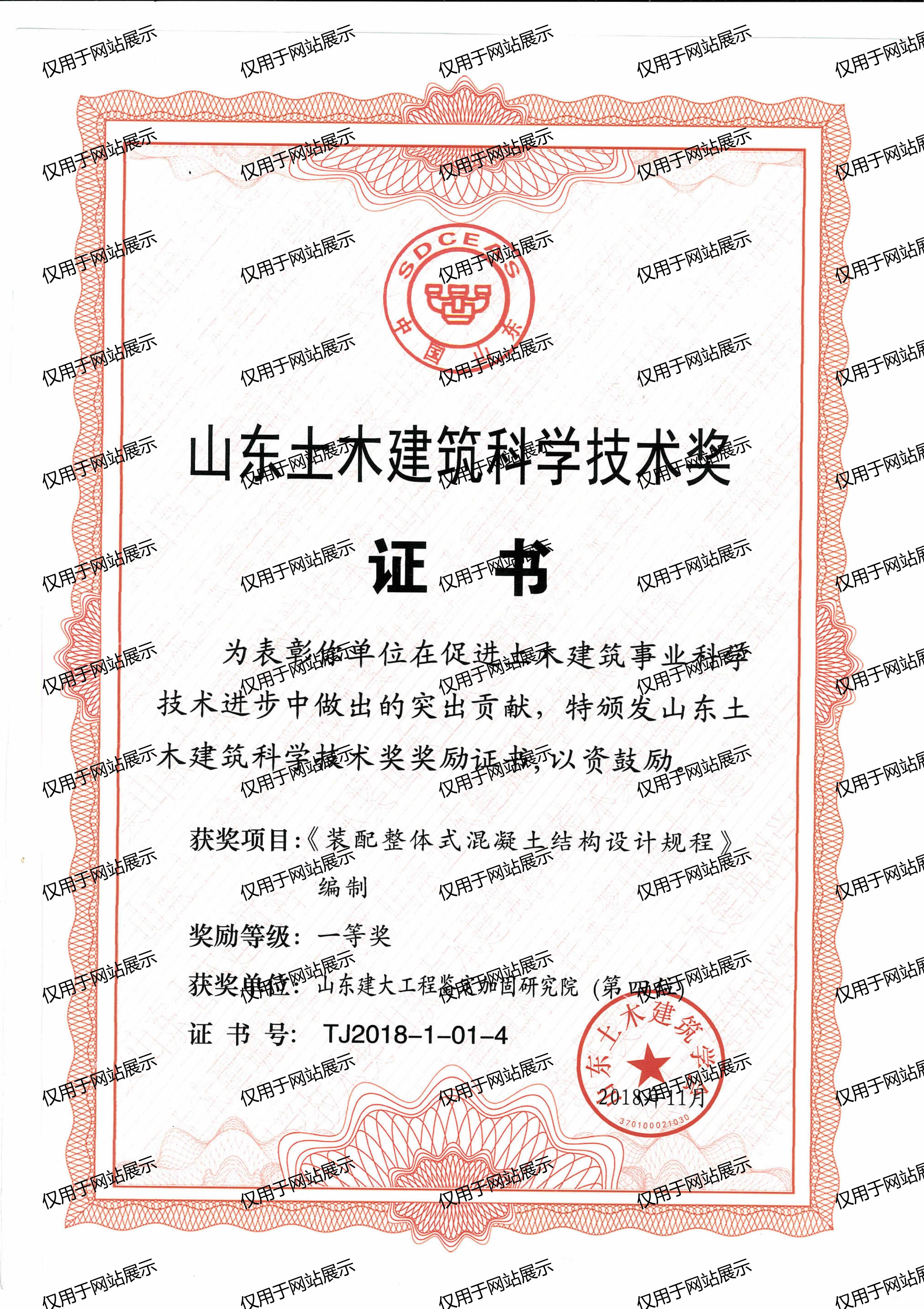 2018年山東土木建筑科學(xué)技術(shù)獎一等獎