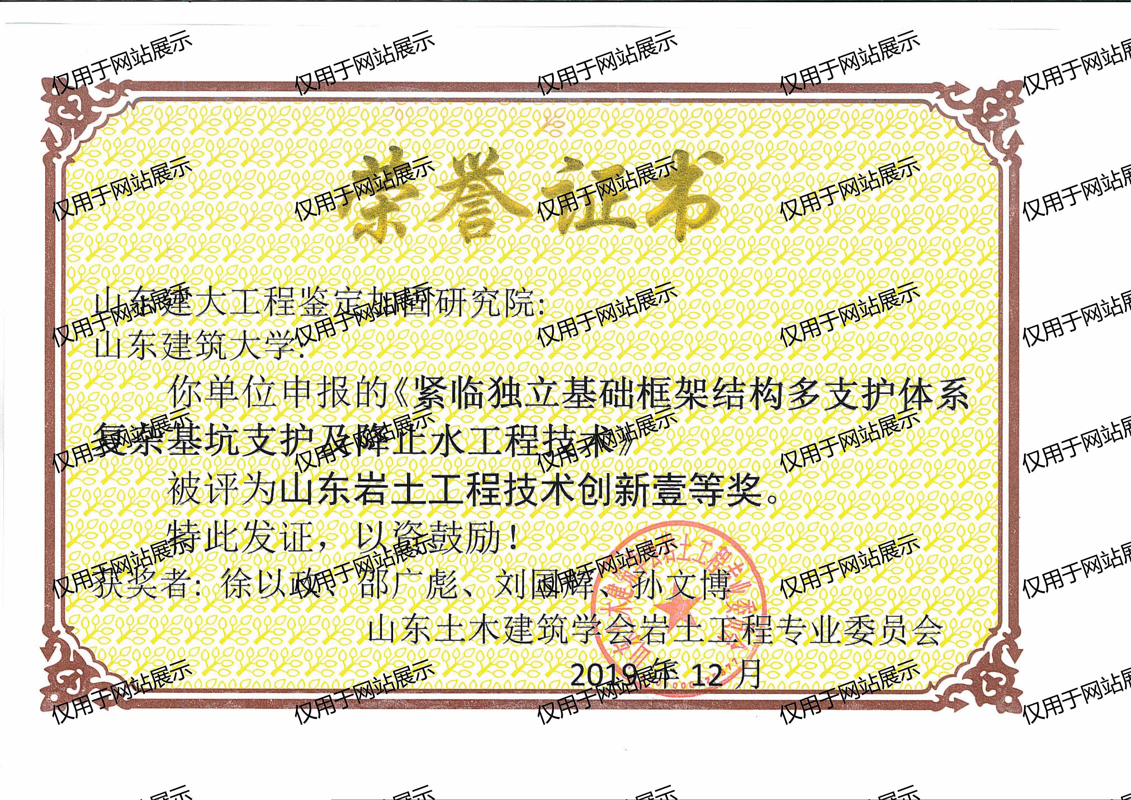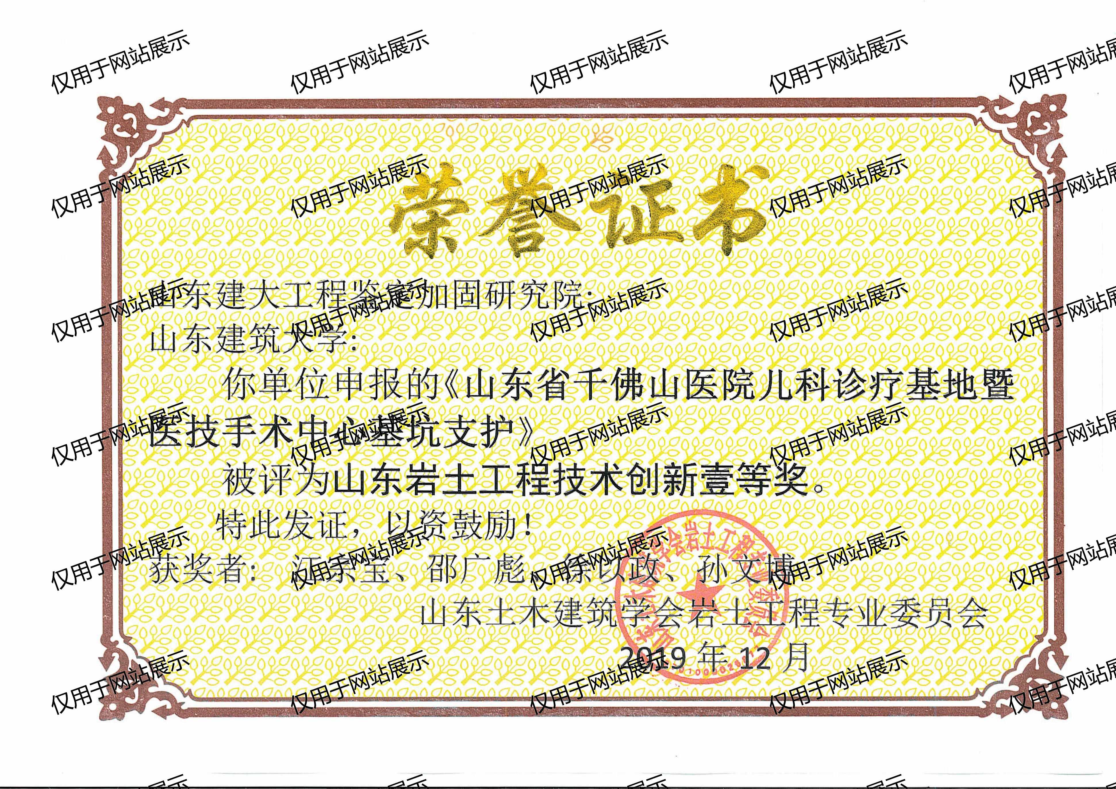 山東巖士工程技術(shù)創(chuàng)新壹等獎