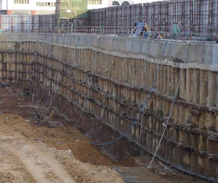 通過對各道工序的嚴格控制,基坑經(jīng)過1個多月的順利完工。基坑開挖過程中對每層的錨索施工過程按照規(guī)范和設(shè)計要求進行拉拔試驗,拉拔試驗結(jié)果表明每道錨索的承載力實際值與設(shè)計值比較接近,說明設(shè)計參數(shù)的取值比較合理?;娱_挖完畢后,基坑范圍內(nèi)所有觀測點,最大側(cè)向變形為13.3mm,大部分側(cè)向變形觀測點小于10mm,基坑周圍道路最大沉降為3mm,未見任何異?,F(xiàn)象,整個基坑所有觀測點的變形值趨于穩(wěn)定