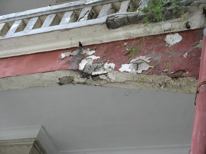 濟南市郵政局北二樓,建于1919年,兩層磚混結(jié)構(gòu),由于該建筑物使用年限接近100年,結(jié)構(gòu)構(gòu)件和非結(jié)構(gòu)構(gòu)件均有不同程度的損壞。按甲方要求,僅對結(jié)構(gòu)的安全性及抗震性能進行復(fù)核,并對相關(guān)構(gòu)件進行承載力復(fù)核和加固設(shè)計,屬保護性修繕設(shè)計范圍。