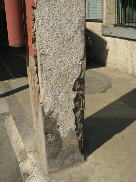 該工程采用了以下加固方法:雙面鋼筋網(wǎng)加固墻體、角鋼加固磚柱、碳纖維加固梁、板、加大截面加固混凝土梁