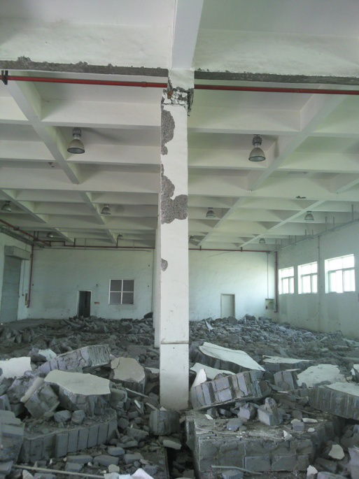 一層框架結(jié)構(gòu),主要原因是施工縫區(qū)域不密實(shí)、填有磚塊等,次要原因是墻體拆除時(shí)對(duì)該柱的擾動(dòng)。